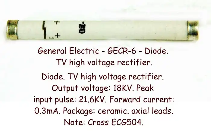 | ECG118 | ~6,500 V | ~0.5 mA | Focus rectifier | Used in CRT focus bias circuits |