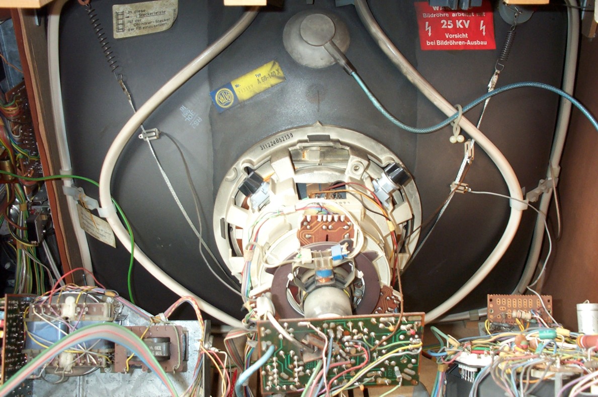 In vacuum tube televisions, low-power RF and audio circuits adopted solid-state first, while high-power output tubes persisted longer.